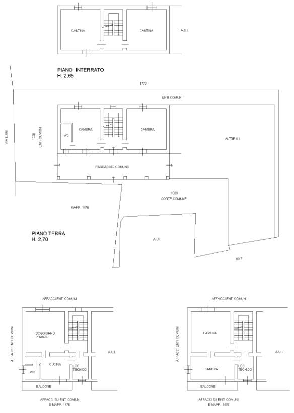 Unità immobiliare sviluppata ai piani S1-T-1-2, composta da due vani ad uso cantina a piano cantinato, da due vani attualmente ad uso sgombero e da un servizio igienico a piano terra, da vano soggiorno/pranzo, vano cucina, bagno e un balcone a piano primo, da due camere, un vano ad uso ripostiglio e un balcone a piano secondo, piano sottotetto e vano scala interno di collegamento a tutti i piani