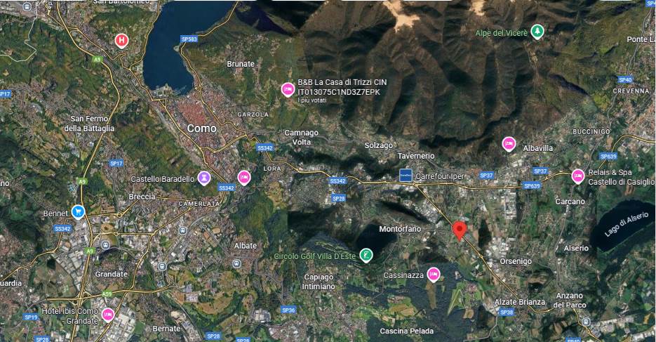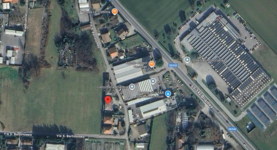 L'immobile è ubicato in prossimità della SS 342 Briantea laddove il Comune di Montorfano confina con il Comune di Orsenigo.