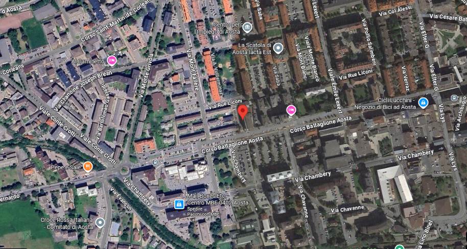 L’appartamento è in posizione pregiata in quanto è all’ultimo piano di un condominio con ampio terrazzo su tre lati (est, sud ed ovest) che consente una vista panoramica sulla città di Aosta e sulle montagne circostanti.