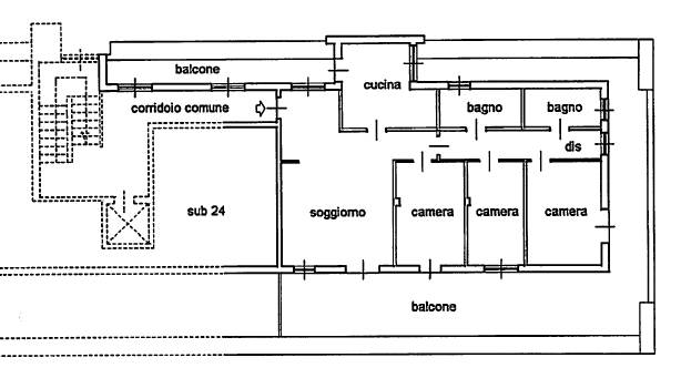 L'immobile risulta così composto: al piano quinto (sesto fuori terra) da ingresso su soggiorno, cucina, tre camere, corridoio disimpegno, due bagni e terrazzo . L’appartamento ha in dotazione: