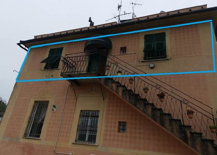 L'immobile è raggiungibile attraverso un cancello posto alla quota della strada, una prima rampa di scale fino alla quota del primo piano, un passaggio sul terrazzo (su cui vige solo il diritto di passo) e due rampe di scale esterne che arrivano alla quota del secondo piano con un ballatoio, su cui si affaccia la porta d'ingresso.