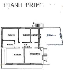 L’ immobile è composto da tre camere, una cucina, un soggiorno e piccolo disimpegno per accedere al bagno oltre a terrazzo.