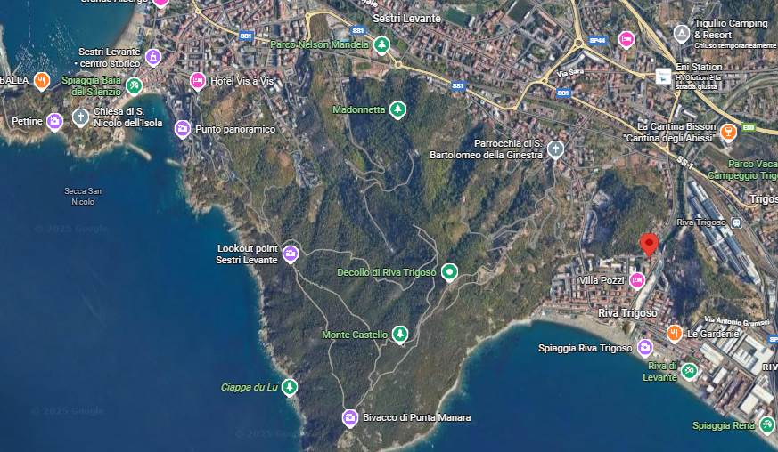 La distanza del fabbricato dal lungomare di Riva Trigoso è di circa 500 m. a piedi, mentre la distanza dalle spiagge di Sestri Levante è di circa 4 km. in auto.