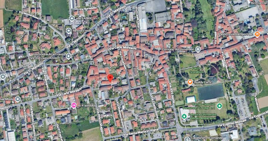 Appartamento ubicato al piano primo, composto da ingresso, soggiorno, piccolo locale cottura, corridoio, bagno e due camere da letto, oltre a box e posto auto. l’appartamento fa parte di un edificio ubicato nella zona centrale di cermenate, posto in un contesto residenziale con tipologia a corte. il box fa parte di un corpo di fabbrica, comprendente altri box, posto davanti all’edificio. il posto auto è parte di un’autorimessa privata con area di pertinenza, costituita da posti auto indivisi, ubicata nelle immediate adiacenze del fabbricato e del corpo di fabbrica. all’appartamento competono gli enti comuni dell’edificio in ragione di 1/6 (comprendenti area di sedime, cortile, fondazioni, muri maestri, androne d’ingresso, vano scala e sottotetto).