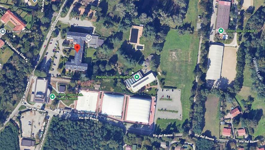 Confina con impianti sportivi che presentano una forte vocazione per il tempo libero e lo sport. Nelle immediate vicinanze, infatti, sono presenti una piscina, un circolo da tennis e un centro d'equitazione.