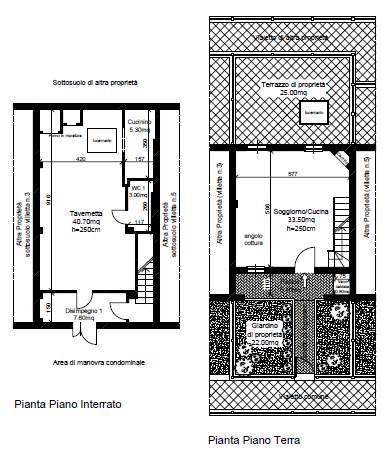 Piano interrato: locale oggi adibito a tavernetta con cucinino, servizio igienico e sottoscala adibito a deposito;