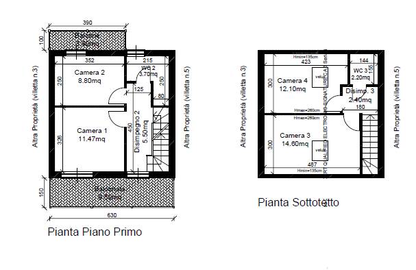 Piano sottotetto: disimpegno, due camere ed un servizio igienico;