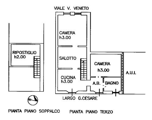 appartamento al piano terzo composto da tre locali, cucina, bagno e antibagno, scala di accesso ad un locale al piano soppalco ad uso ripostiglio.