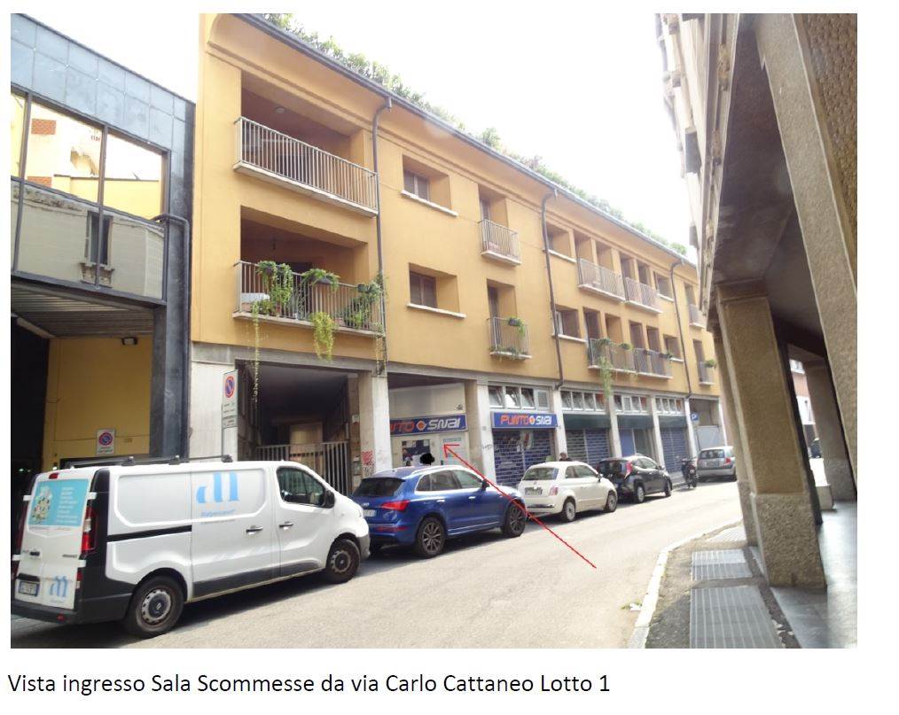 Negozio della superficie commerciale di mq. 276,03, oltre box singolo e quota indivisa di cantina.L'immobile è posto al piano terra di complesso su tre piani, composto da ufficio, doppi servizi, disimpegno, locale tecnico, area fumatori, area sportiva, un balcone, due locali sgombero e disimpegno al piano interrato.