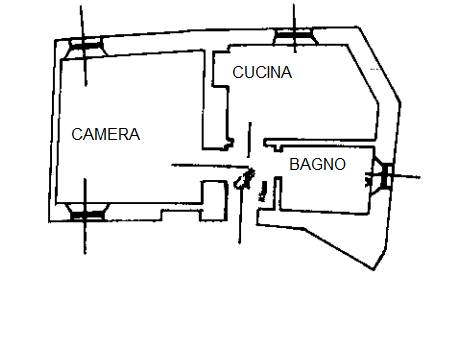 Appartamento bilocale a piano terreno, composto da ingresso, camera, cucina, bagno