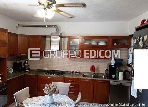 B) appartamento tipo duplex della superficie commerciale di 117,00 mq posto a piano primo e secondo a cui si accede attraverso scala esterna di ballatoio così composto: primo piano zona giorno con scala interna di collegamento al piano superiore, disimpegno, vano con caldaia murale autonoma, ampio bagno; al secondo piano due camere disimpegno e bagno.
