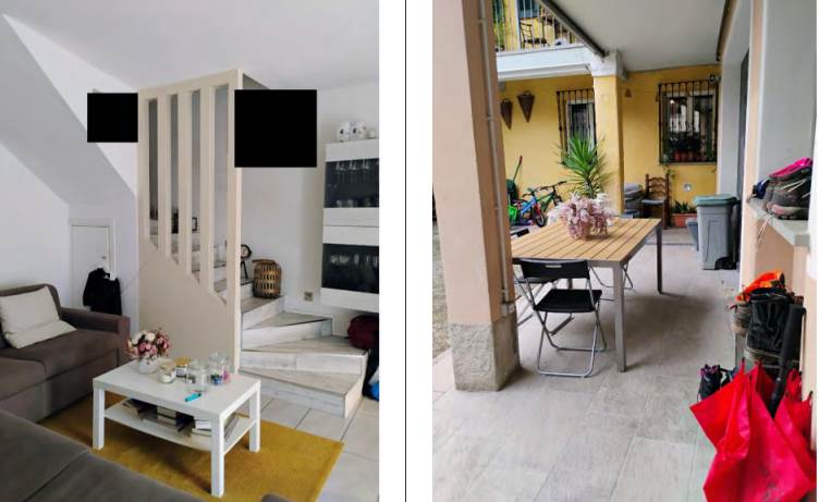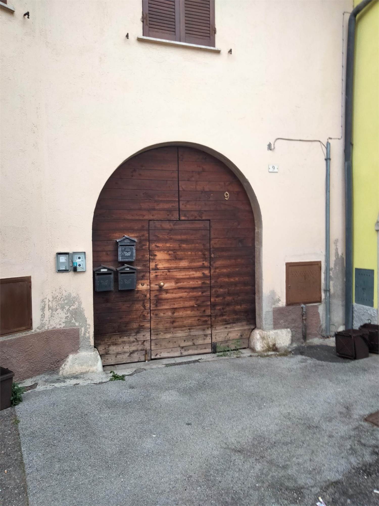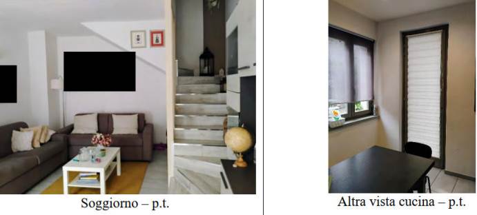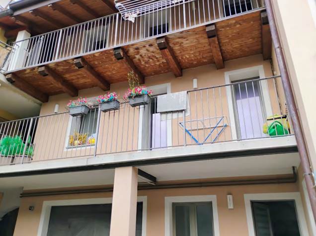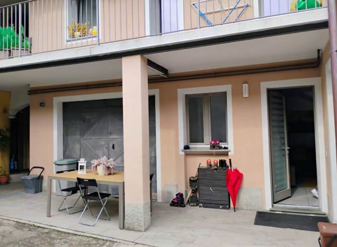 appartamento disposto su due piani composto al piano terra da portico esclusivo, soggiorno/pranzo, zona cottura, antibagno e bagno ed in corpo separato, nel cortile comune, piccolo ripostiglio comune, ed al piano primo da disimpegno, due camere, bagno e balcone, con annessa autorimessa al piano terreno.