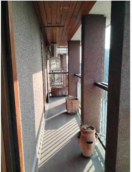 anche gli ambienti che affacciano lungo il lato a nord: i bagni e gli ambienti di servizio sono serviti da un balcone di servizio che termina la proprietà verso il cavedio interno.