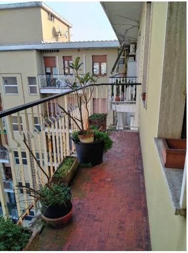 Posto al sesto piano dell'edificio (ultimo piano) la proprietà è composta da un trilocale con tre bagni, cucina abitabile di buone dimensioni e spazi di circolazione/ingresso molto ampi. Tutti gli ambienti sono di grandi dimensioni, il soggiorno, che caratterrizza con la sua superficie l'appartamento, occupa quasi tutto l'affaccio su lato sud verso piazza Risorgimento dove un lungo balcone ne costruisce il fronte;