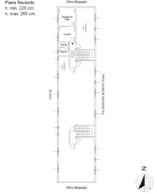 Appartamento, posto al piano secondo (terzo fuori terra - sottotetto) di un condominio, composto da cucina-soggiorno, camera, disimpegno-ripostiglio, bagno e piccolo terrazzino accessibile dal bagno.