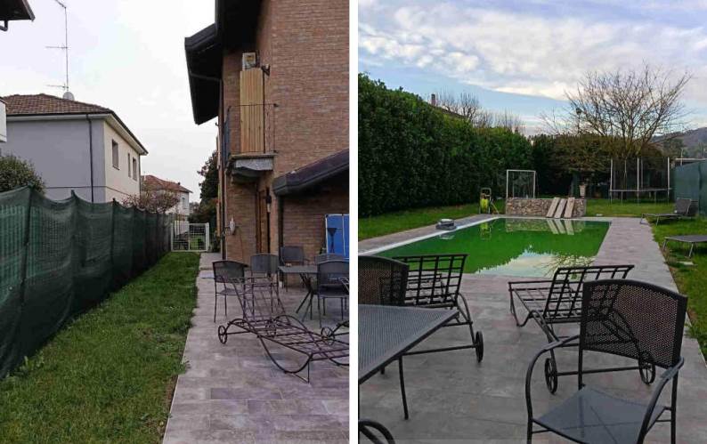 villa singola della superficie commerciale di mq. 209,48 disposta su quattro livelli collegati da scala interna, ampio giardino con piscina ed autorimessa doppia adiacente la casa, ampio locale e due ripostigli al piano cantinato; soggiorno, cucina, dispensa, disimpegno e bagno al piano terreno; due camere da letto, disimpegno e bagno al piano primo; un locale adibito a camera nel sottotetto. Completa la dotazione dell'immobile la presenza di due balconi al piano primo e l'autorimessa doppia adiacente la casa