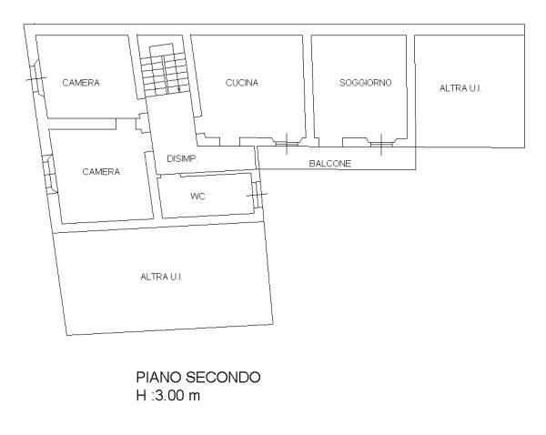 unità immobiliare a destinazione residenziale posta al secondo piano in fabbricato residenziale. Composto da ingresso in corridoio con affaccio su ballatoio, n. 4 locali e bagno adibiti a cucina/pranzo, soggiorno, camera 1 camera 2