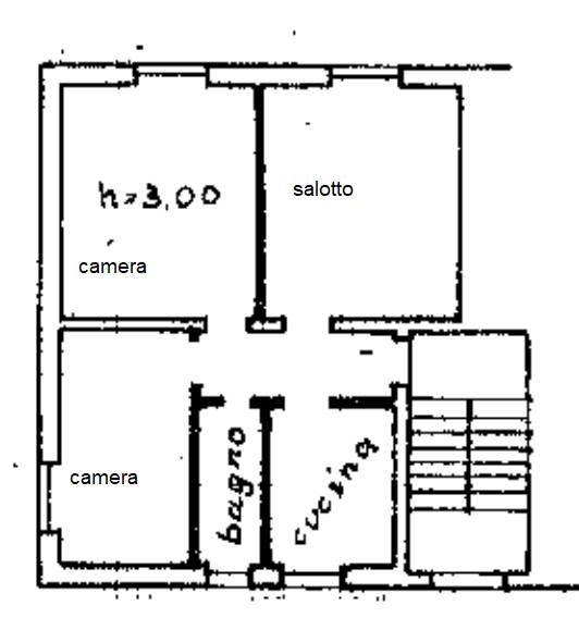 appartamento al piano terreno composto da tre locali, cucina e servizio igienico, con vano solaio al piano terzo (sottotetto)