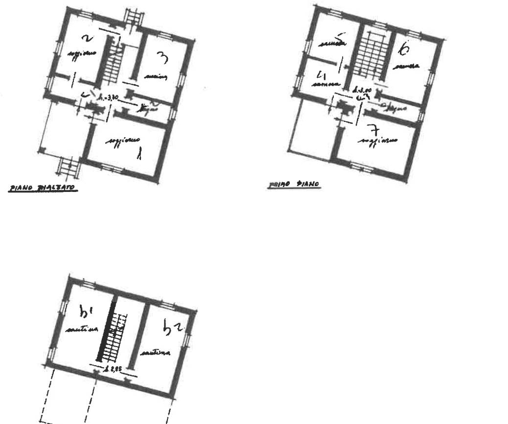 villetta su tre piani, composta da due locali, cucina, servizio, disimpegno e portico al piano terra, quattro locali, disimpegno, servizio e balcone al piano primo, due vani cantina e disimpegno al piano seminterrato, con annessa area di pertinenza