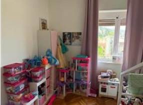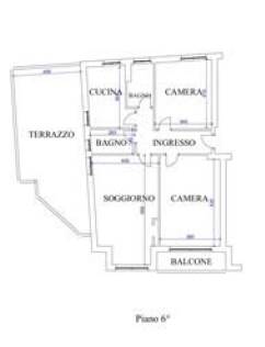 bagni. Vi sono poi due terrazzi: il più ampio, posizionato sul lato nord, ha una superficie di circa 35mq. ed è accessibile dal soggiorno e dalla cucina, l’altro balcone di 4,50 mq. è posizionato sul lato ovest ed è accessibile dalla camera da letto.