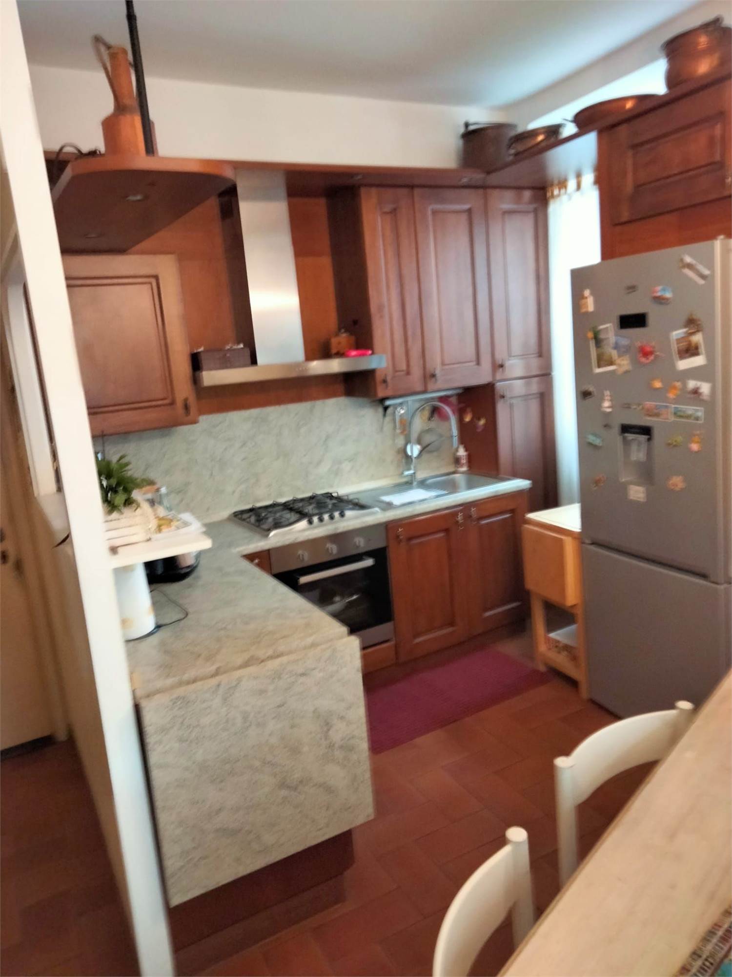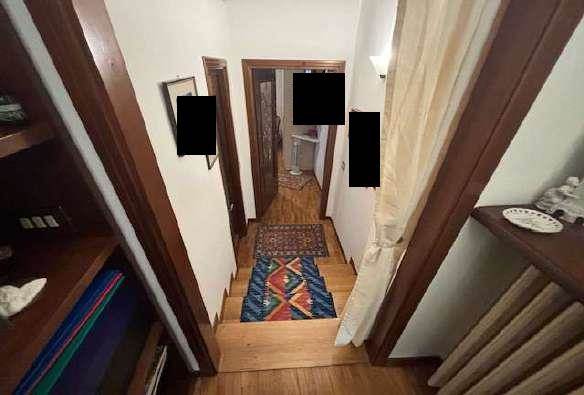 -Piano primo collegato sia da scala comune sia da scala interna: ingresso, cucina, soggiorno con collegamento al piano sottostante, disimpegno, bagno, camera da letto,
