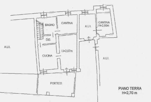 unità immobiliare su due piani oltre autorimessa, composta da un locale, cucina, servizio, disimpegno cantina e portico al piano terra e da tre locali, disimpegno, portico con servizio al primo piano con annesso altro locale cantina al piano terra, locale autorimessa al piano terreno, in corpo staccato