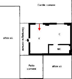 Appartamento posto al piano terra di un caseggiato di due piani fuori terra.