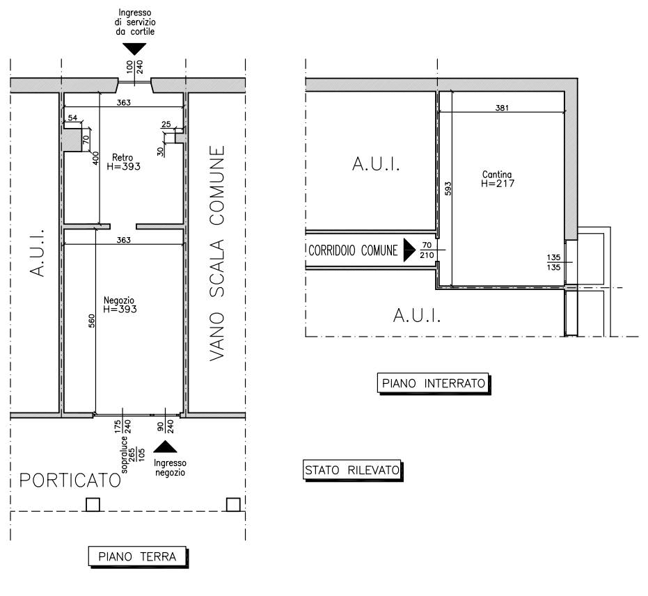 negozio con annesso vano di cantina al piano sotterraneo della superficie commerciale di mq 44,45 - libero