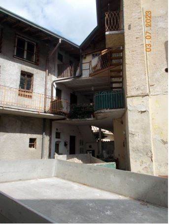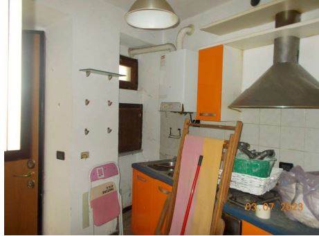 abitazione con cantina, composta da ingresso/cucina, disimpegno scala e bagno al piano terra, vano scala e soggiorno al piano primo, vano scala e camera al piano secondo con scala esterna comune, dipartente da portico comune, che collega il piano terra al piano primo e secondo.