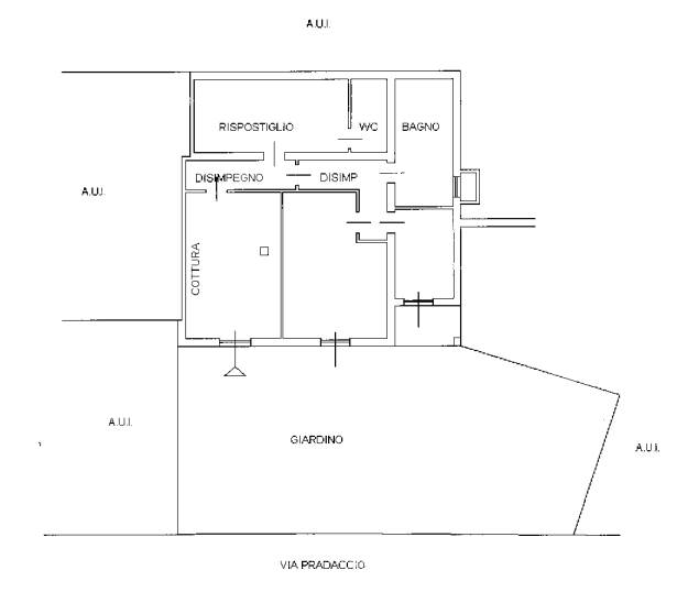 Appartamento al piano terra, composta da: soggiorno-ingresso-cucina , disimpegno, locale ripostiglio con WC/lavanderia, bagno, camera, locale accessorio con loggia e terreno di 1021 mq