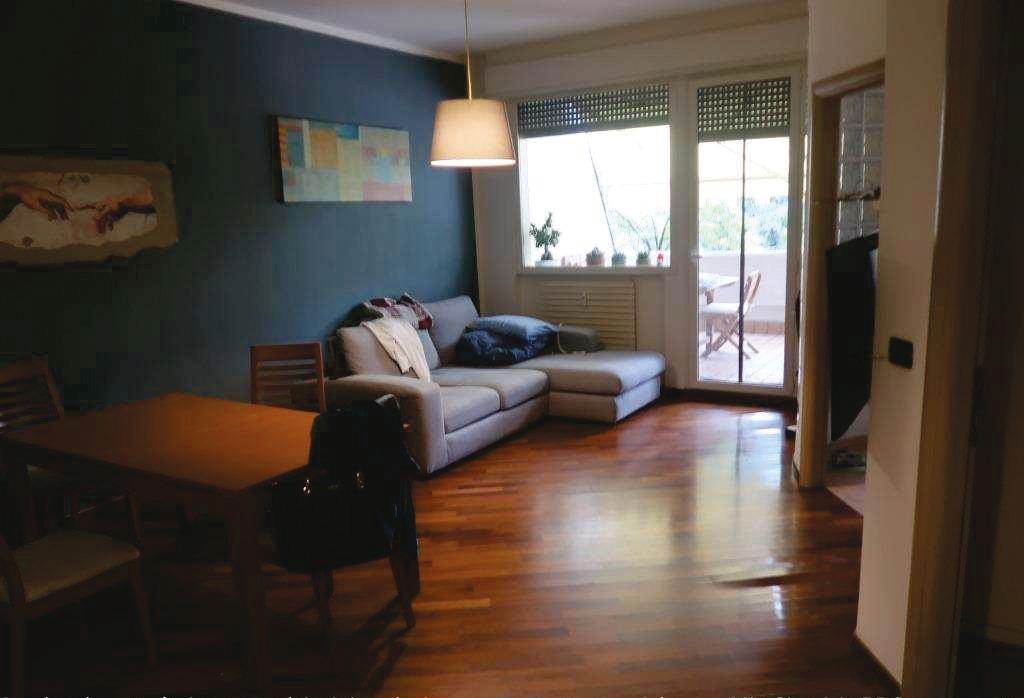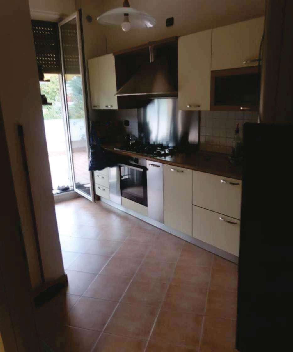L'immobile è composto da soggiorno, disimpegno notte, due camere di cui una con balcone, bagno, cucina, terrazzo con accesso dalla cucina e dal soggiorno.