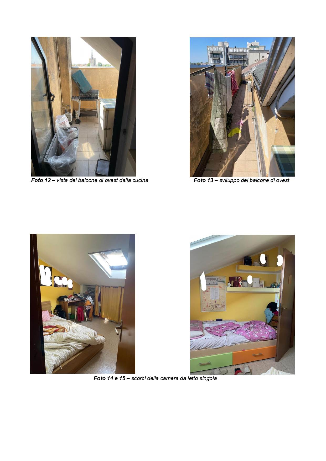 L’immobile è composto da: disimpegno in ingresso, ripostiglio, soggiorno, cucina, corridoio zona notte, bagno, due camere (una singola e una matrimoniale), corredata da un balcone verso il fronte ovest.