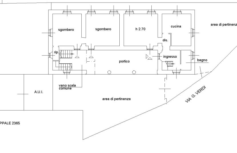 Unità immobiliare posta al piano terra con cantina pertinenziale al piano interrato. Composta da ingresso, disimpegno, soggiorno, cucina, bagno, ripostiglio, ampio porticato, area di pertinenza, oltre a vano cantina pertinenziale al piano interrato del fabbricato raggiungibile dal vano scala comune ed attraversando locale pertinenziale di altra unità immobiliare