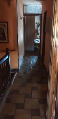 Appartamento in corte disposto su due livelli, termoautonomo, composto da locale soggiorno e cucina al piano terra e al primo piano con due camere, bagno e ripostiglio disimpegnate dal corridoio antistante allo sbarco della scala di collegamento interno in legno oltre al vano tecnico di sottotetto soprastante che accede dalla botola passo d'uomo nel corridoio; oltre n. 2 locali ad uso ripostiglio in corpo staccato su due livelli.