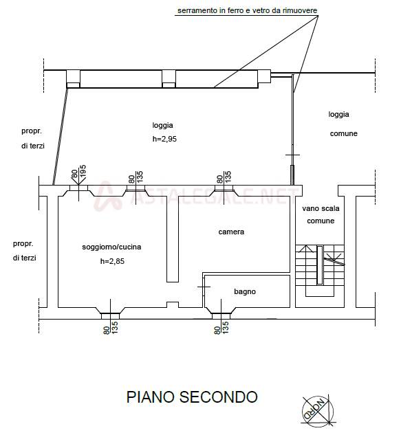 L'immobile è composto da loggia (attraverso la quale si accede dal vano scala comune), soggiorno con zona cottura, disimpegno e camera da letto.